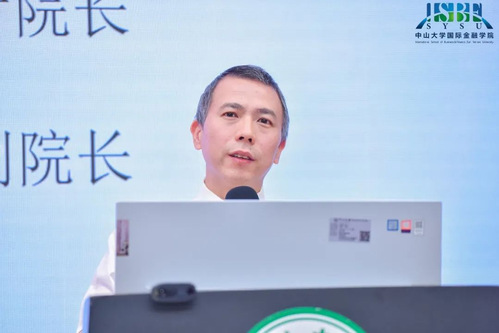 中山大学国际金融公司经理黄新飞教授致辞。他介绍了国际金融公司的发展历程,以及公司经管融合、错位发展、重点突破的团队建设体系,全覆盖的科研育人体系与强院育人、全面发展的人才培养体系。他诚挚邀请与会嘉宾来公司交流指导。