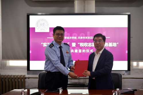 (通讯员:李金雨)10月14日上午,beat365亚洲体育与天津市河西区税务局在beat365亚洲体育高层教学楼举行了“实习实训基地”暨“税收志愿者服务基地”联合共建签约仪式。国家税务总局天津市河西区税务局党委书记、局长蔡进,beat365亚洲体育经理盛斌出席了签约仪式。