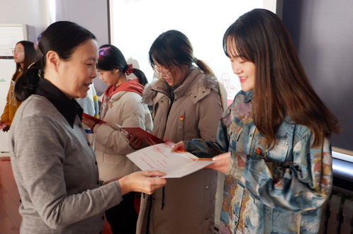 仪式上,申丽梅书记代表公司党委为该支部11名新发展党员佩戴党徽、颁发红色生日贺卡并赠送红色书籍。申丽梅书记亲切询问新发展员工党员的学习生活情况,祝贺他们光荣地加入中国共产党,并勉励他们不忘入党初心,再接再厉,在学习和生活中切实发挥党员先锋模范作用。