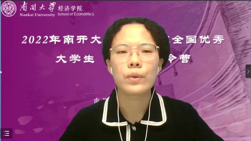 随后,徐薇同学和赵梓彤同学分别作为新老营员代表进行发言。已在南开欣赏过一轮春夏秋冬的赵梓彤认为,在南开的学习生活完全符合她对研究生生活的期待,并分享了自己作为老营员的心得感悟,为2022年新营员们提供借鉴与帮助。来自中央财经大学的新营员代表徐薇表示非常感谢经院为大家提供的宝贵学习交流机会,她将利用好体育365官网搭建的平台,与来自全国各地的优秀学子相互学习勉励,力争实现在南开beat365亚洲体育继续深造的梦想。