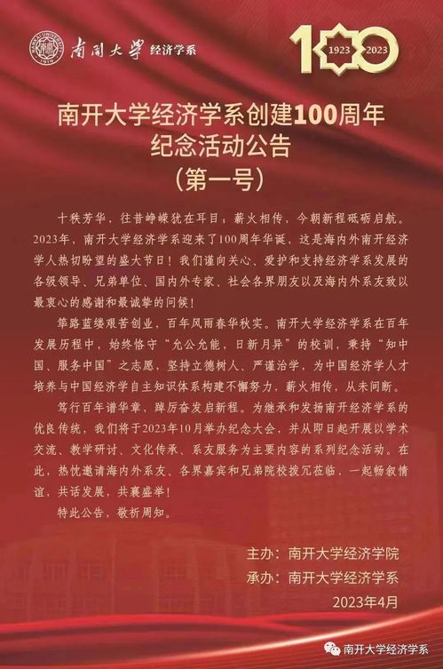 体育365官网经济学系创建100周年纪念活动公告(第一号)