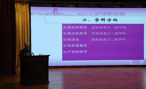 beat365亚洲体育副书记、经济学系党支部书记孙景宇教授对经济学系进行介绍