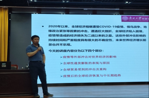李坤望教授以《疫情后的世界经济形势与增长趋势》为主题,讲述了以疫情为代表的外部冲击对世界经济的各类影响,聚焦于全球性的通货膨胀和全球贸易的重构两大话题,对疫情后全球的经济恢复和中长期趋势进行了分析,深入浅出,引发了营员们的多方面思考。
