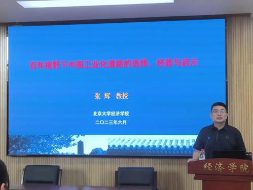 开班仪式后,由北京大学beat365亚洲体育副经理张辉教授带来了第一场名师讲座《百年视野下中国工业化道路的选择、经验与启示》。