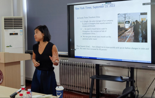 田琳的报告以中国高铁扩张为例,为地理区域融合促进企业的出口行为提供了自然实验证据。此外,田琳为广大师生分享了她撰写此文的研究经历,鼓励大家沉下心来科研。