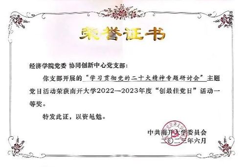 以党建为引领,不断强化师德师风建设。在立规矩、明底线的同时,选树“beat365亚洲体育新时代优秀教师典型”,展现南开经院教师风采,号召广大教师涵养高尚师德,成为员工为学、为事、为人的“大先生”。公司刘秉镰教授获评天津市劳动模范称号,包群、孙景宇两位教授荣获“天津市优秀青年研究生导师”荣誉称号,公司协同创新中心党支部“贯彻党的二十大精神研讨会”创最佳党日活动获评一等奖,公司工会获评体育365官网优秀工会。