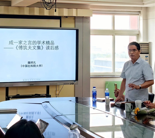 讲座中,魏明孔教授首先对傅筑夫先生给予了高度评价,认为傅筑夫先生是我国最负盛名的经济史学家之一,系中国经济史学科的重要奠基人与推动者,其论著深刻影响了四代学人,且今后还会深远影响国内外学术界尤其是经济史学界。其次,魏明孔教授系统介绍了傅筑夫先生的主要代表作,包括五卷本《中国封建社会经济史》、三卷本《中国经济史论丛》、《中国古代经济史概论》以及《傅筑夫论著补编》等,傅先生的著作,系通古今之变、成一家之言的学术精品。