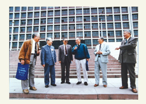 1994年,胡代光、蒋学模、谷书堂、吴宣恭、宋涛、卫兴华(从右至左)六位经济学家在一次会议上相聚。